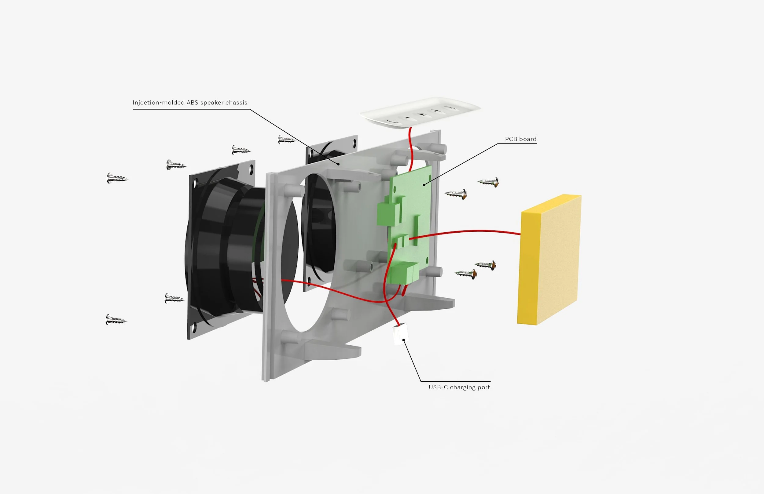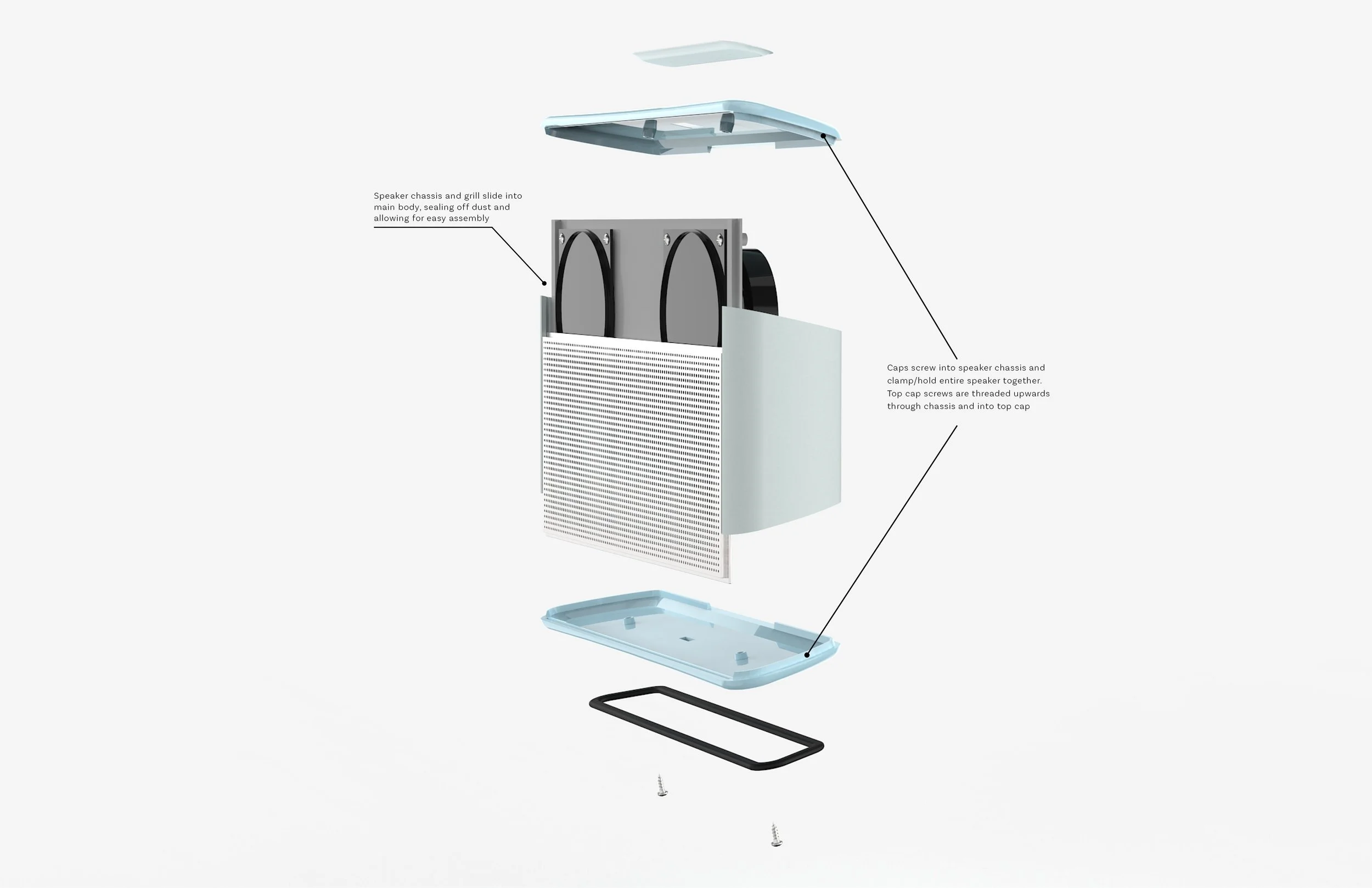 For this project I wanted to create a speaker that was true to the right to repair movement, but maintained a high-quality feel that didn’t make the speaker any less desirable than the best options you can already buy, embodying “plastics with purpose.” Most of the project for me was an exploration of form, and I decided on one that would be just as appropriate in a bedroom or living room as in the outdoors which is easy to achieve considering the speakers' small size. The angled grill gives the speaker a distinct silhouette and angles the sound slightly upward for better listening. The construction is compact and gives the speaker some weight, all well maintaining durability with every part being secured with screws. This offering from “Tilley Audio” promises to divert waste because of its ease of repair, while allowing for convenient listening in any location.
